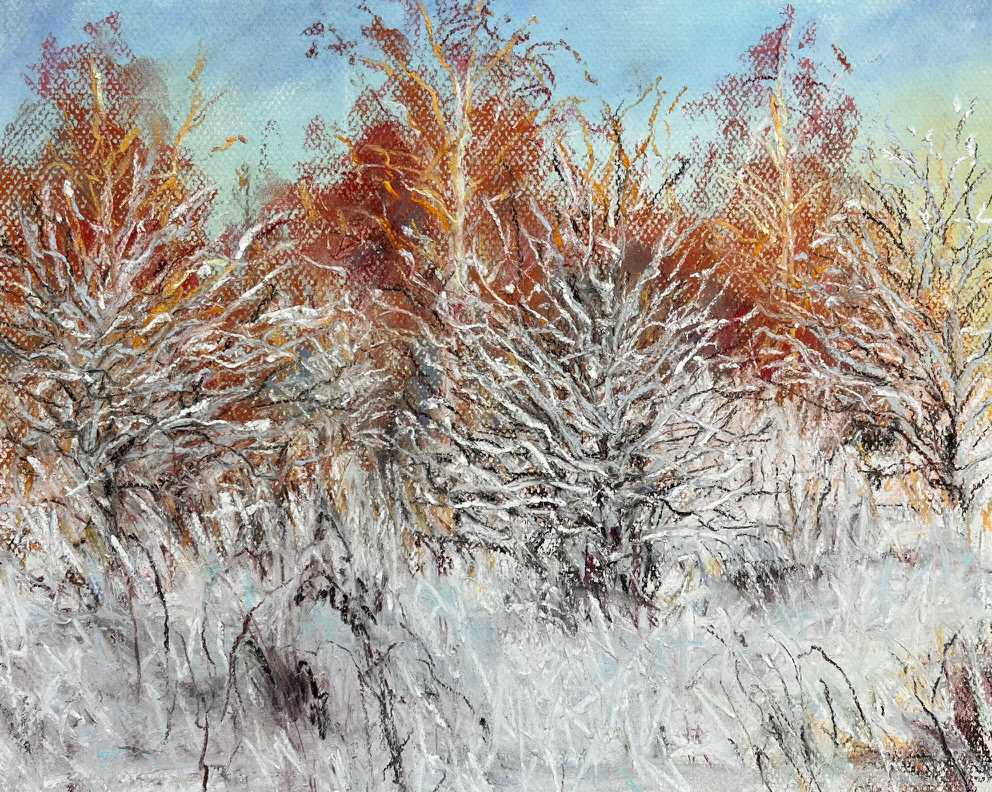 January 3: A cold frosty afternoon (-4o) with snow and golden light silhouetting the trees